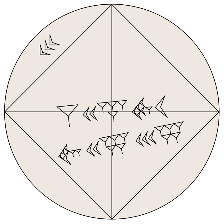 Circular tablet YPM BC 021354 contains a drawing of a square and its diagonals together with the sexagesimal representation of the diagonal length written in cuneiform numerals.